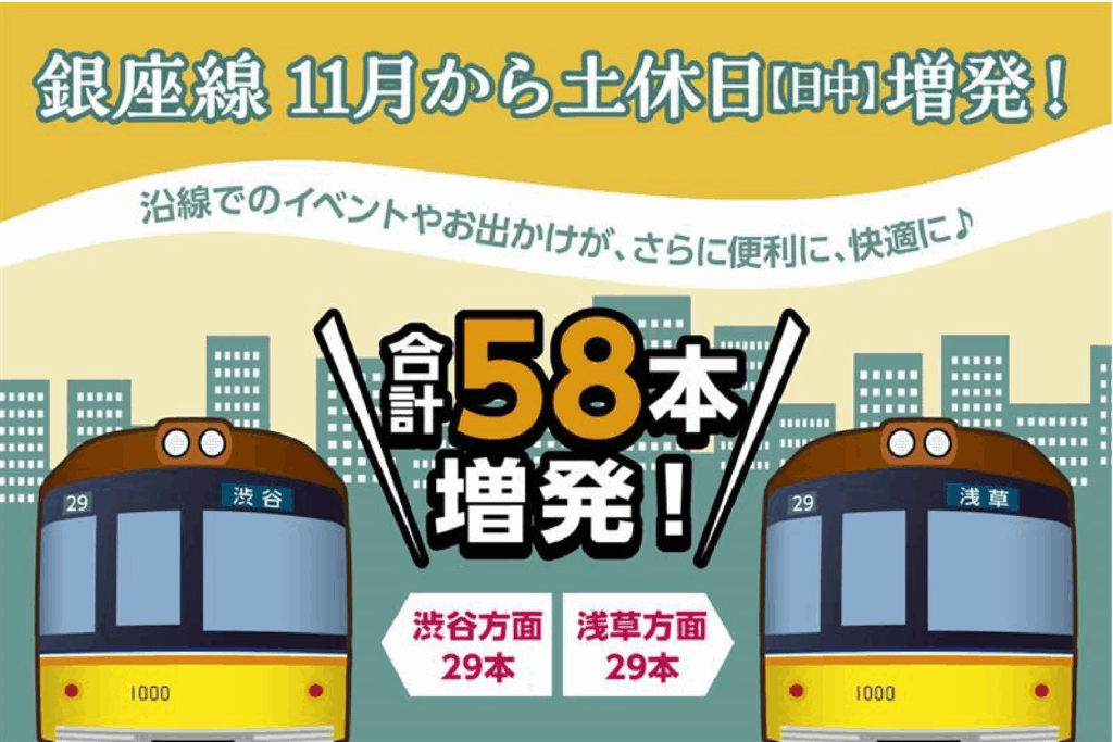 11月1日から銀座線の土休日ダイヤが変わります。日中の運転間隔が短くなり、週末の移動がより便利になるんです。